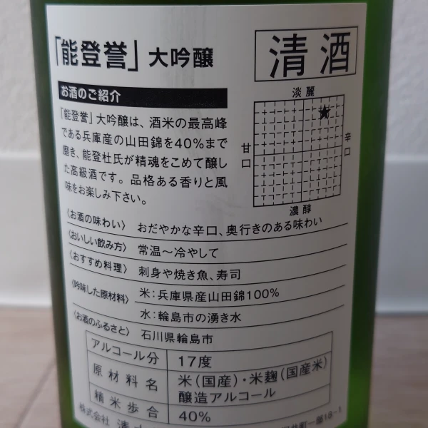 ㈱清水酒造店さんの能登誉 大吟醸。 #SAKAZUKI