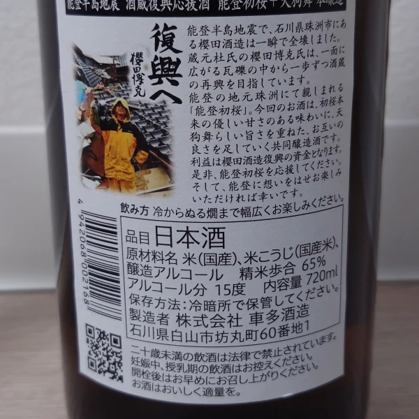櫻田酒造㈱さんの能登初桜 + 天狗舞 本醸造。けっこう黄色。乳酸や琥珀を感じるコクある香り。火入れ日本酒らしい甘旨さがメインだが、綺麗さや軽快さが強い。古き良き日本酒を再構築した新世代感がある味わい。 #SAKAZUKI