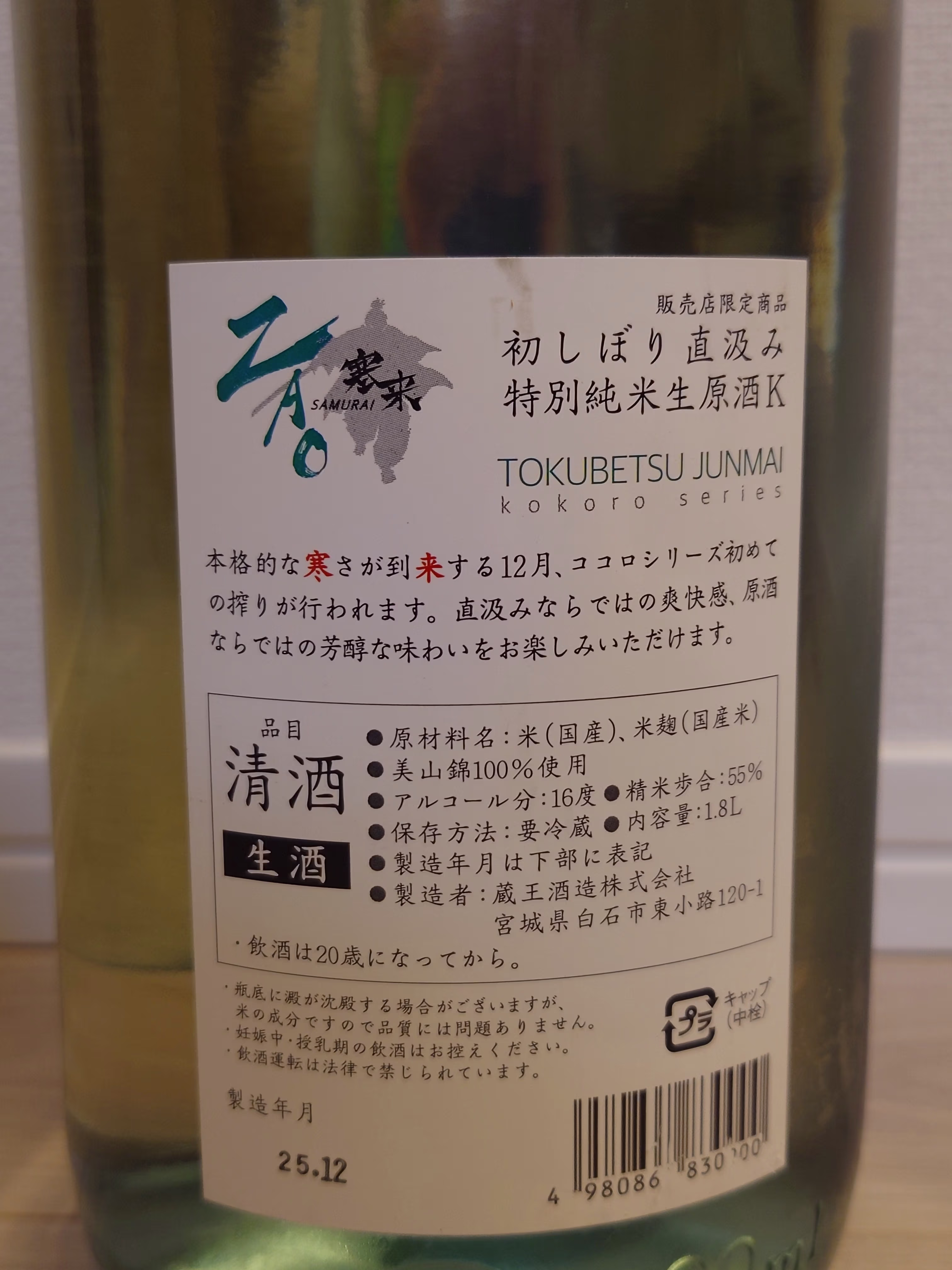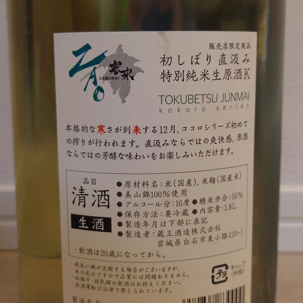 ZAO 初しぼり直汲み 特別純米生原酒K 寒来