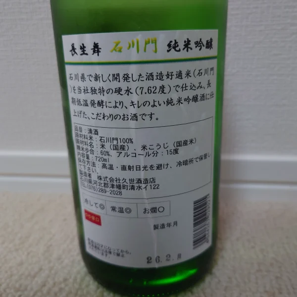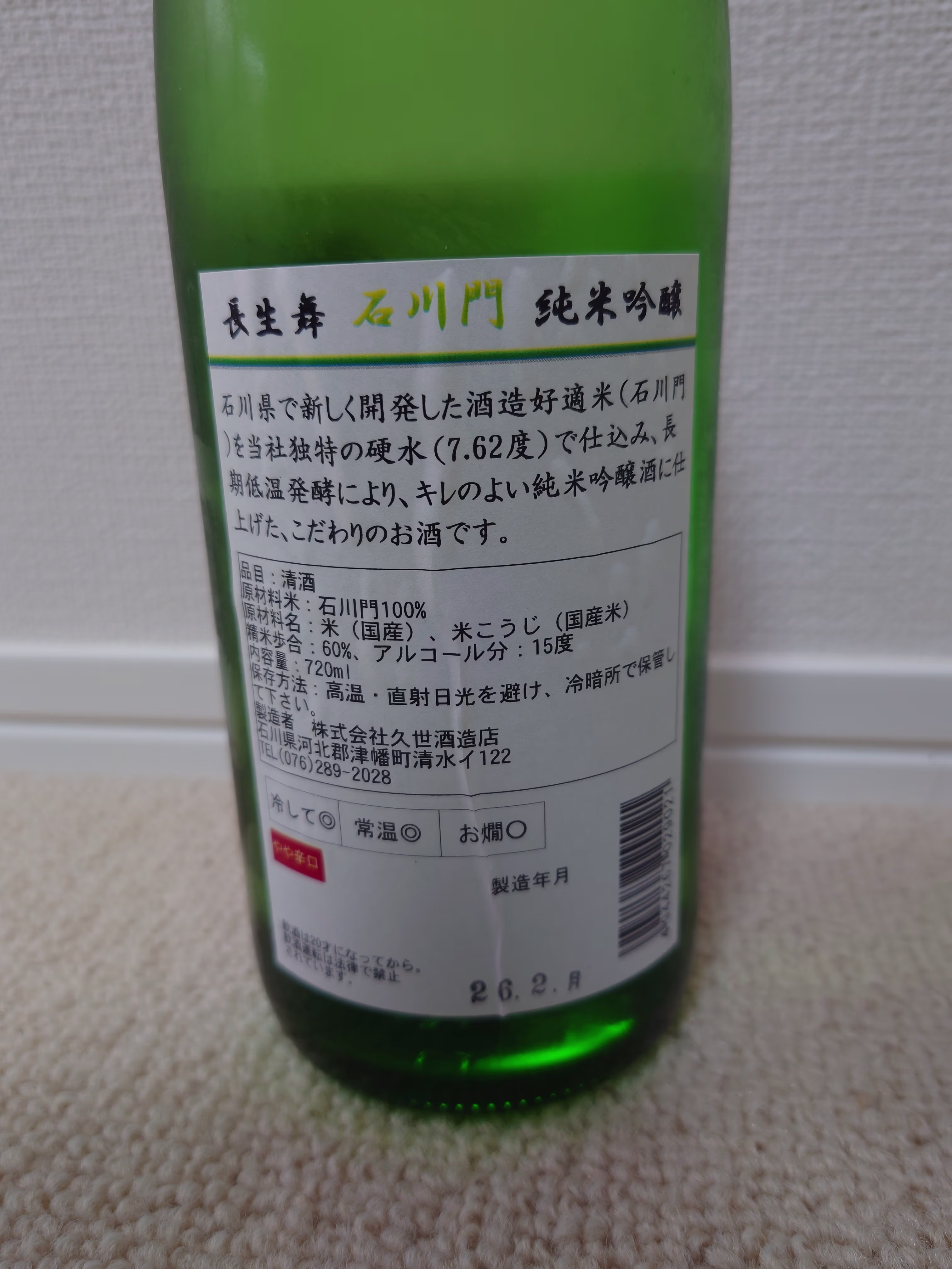 ㈱久世酒造店さんの長生舞 石川門 純米吟醸。 #SAKAZUKI