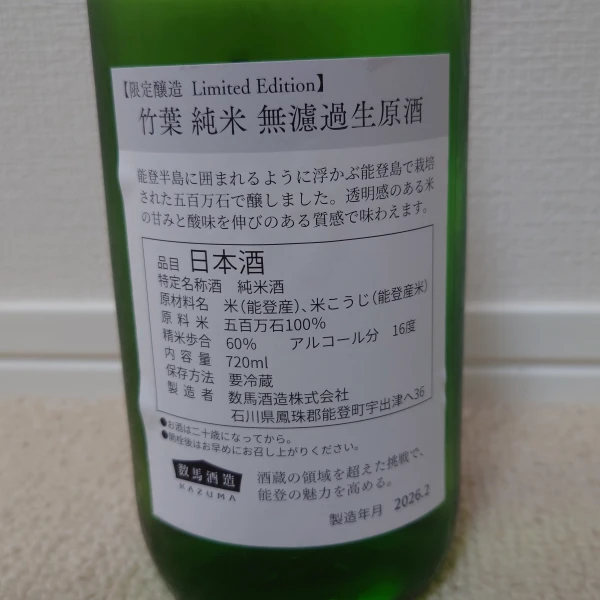 数馬酒造㈱さんの竹葉 純米 無濾過生原酒 Limited Edition。 #SAKAZUKI