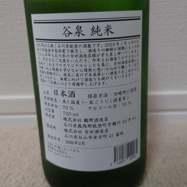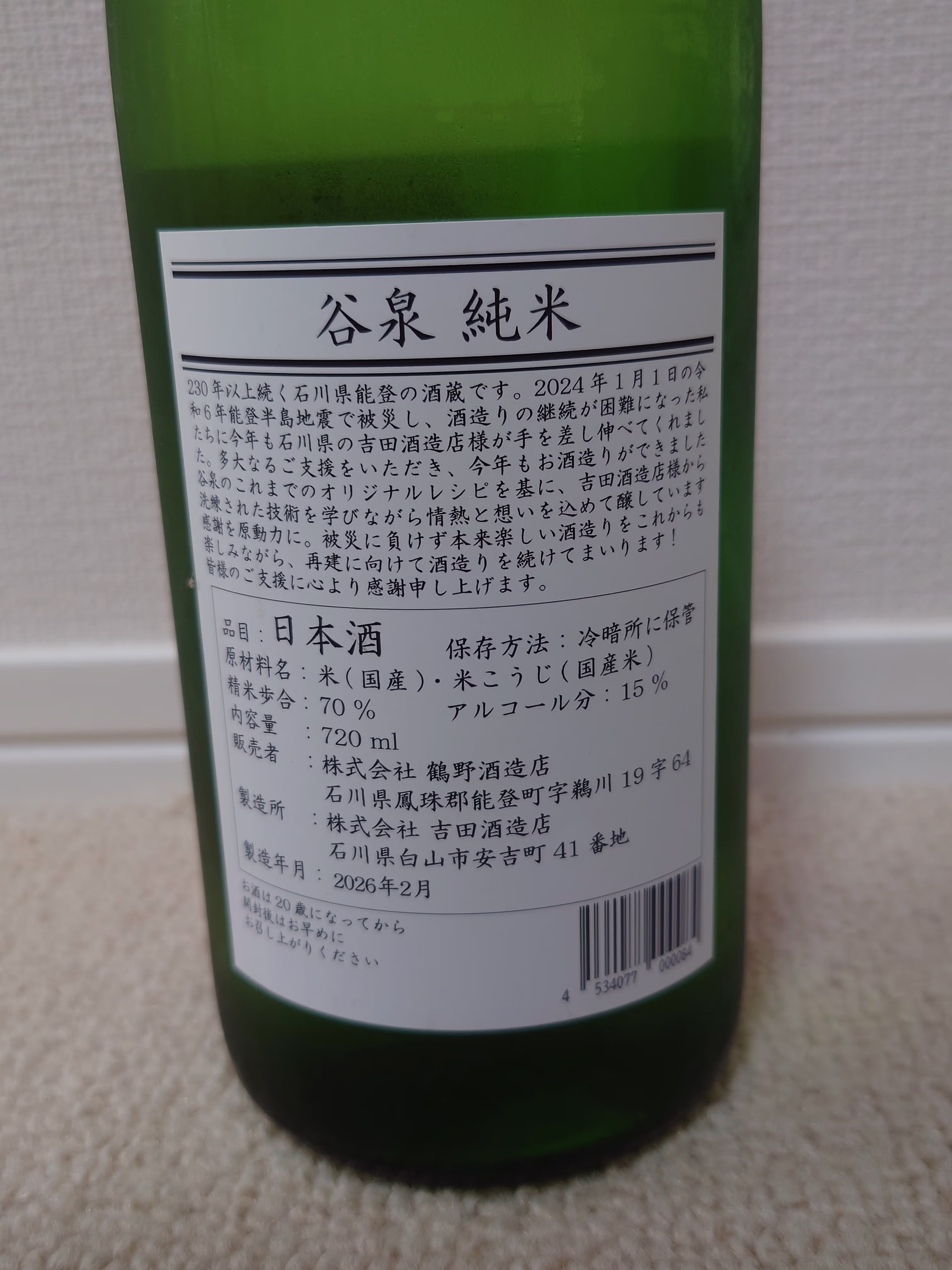 ㈱鶴野酒造店さんの谷泉 純米。 #SAKAZUKI