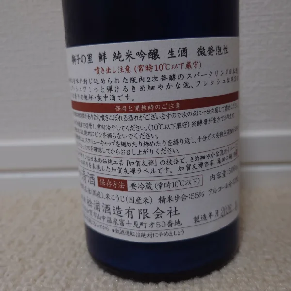獅子の里 鮮 純米吟醸 生酒 微発泡性