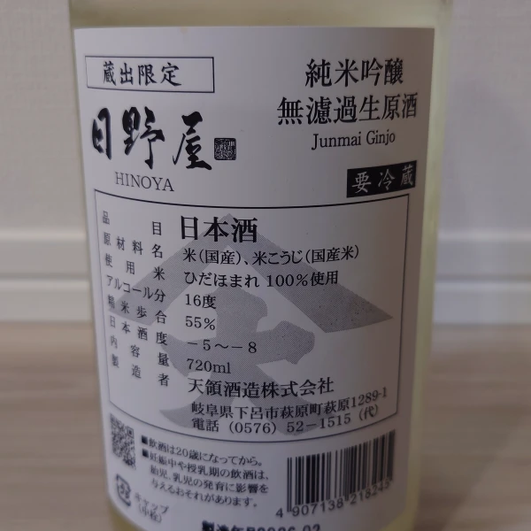 天領酒造㈱さんの日野屋 純米吟醸 無濾過生原酒 しぼりたて ささにごり。 #SAKAZUKI